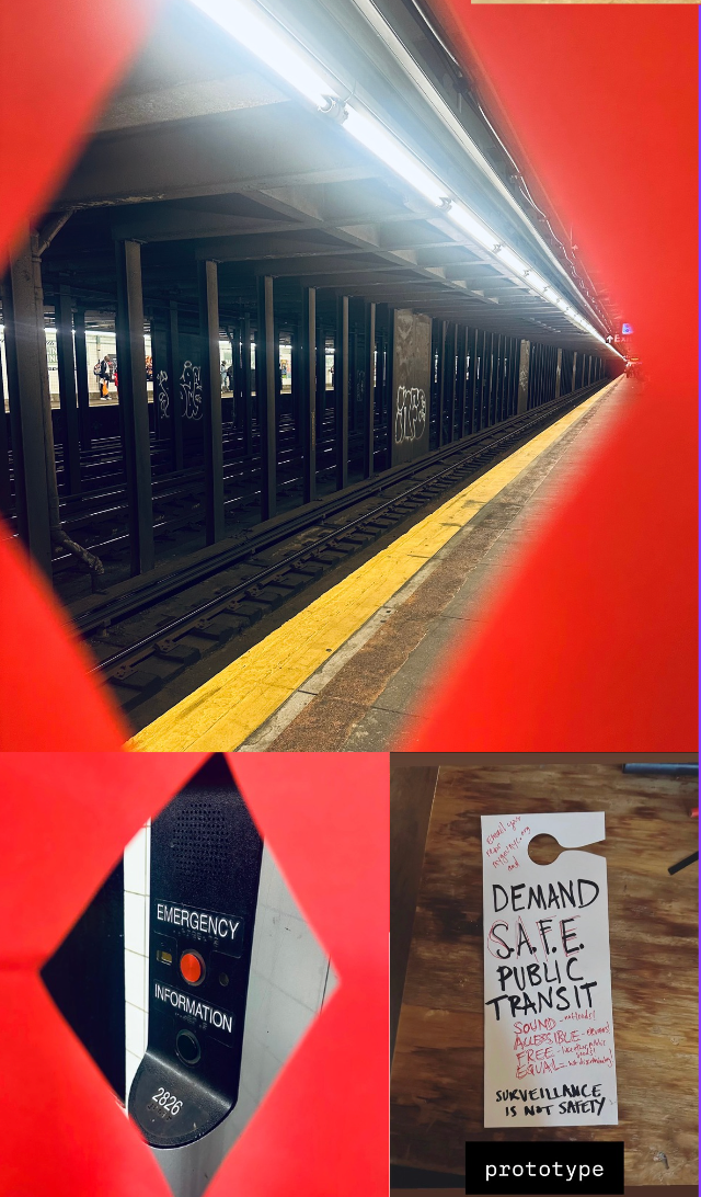 I took TO THE STREETS! with Lukaza Branfman-Verissimo, Sarah Al-Yahya, Paige Fulton. In this course on making work in public space and in collaboration with community, I focused on public transit as my site of exploration, reflecting on police violence and surveillance on the MTA and imagining what truly safe public transit could look like.